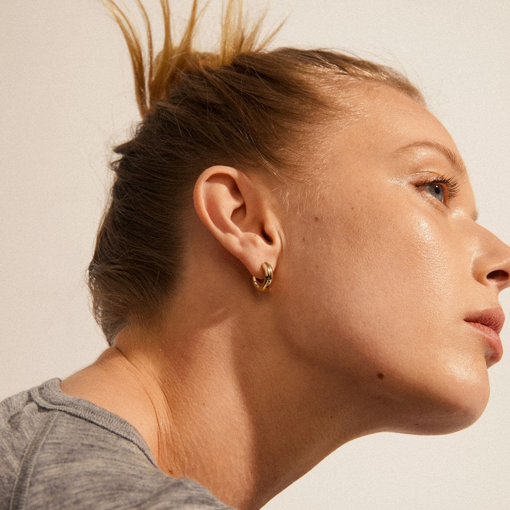 Rediscover the classics with these gold-plated Aica earrings made from a minimum of 75% recycled materials. The chunky shape of the earrings gives weight to the minimalist design, whilst the shiny surface reflects the light and gives the cutest shine. Perfect for everyday wear, or as a basic piece you can mix-and-match with other chunky ear pieces.
