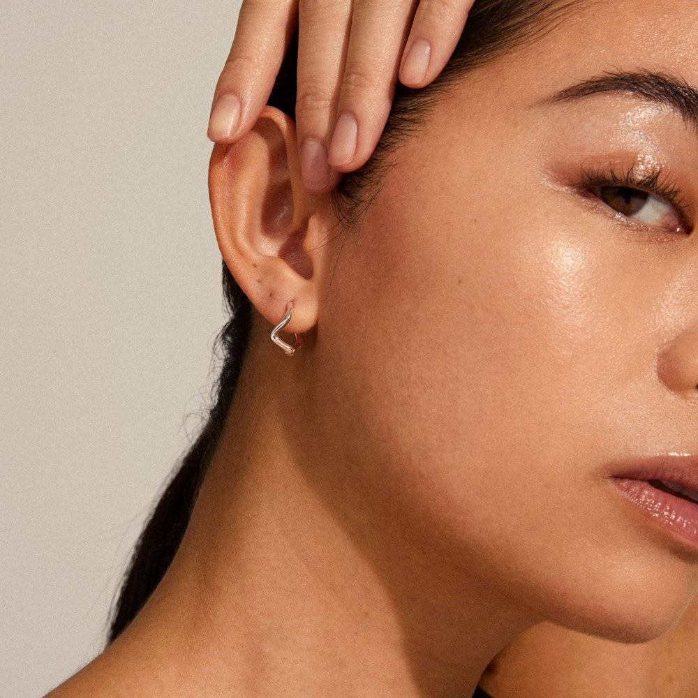 Alberte Organic Shape Hoop Earrings - Silver Plated
