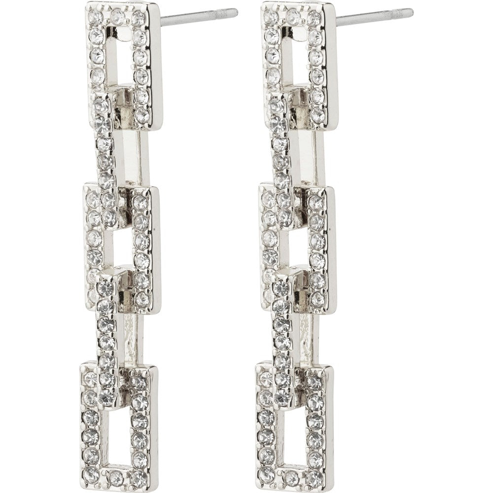 Shine away with the silver-plated earrings from Pilgrim's COBY series, a set of recycled items made from a min. of 75% recycled material. The earrings' squared shapes give an awesome retro vibe, while the sparkling Preciosa crystals add extra shine to your look. Wear them as an eye-catching key item to the season's glammy styles.
