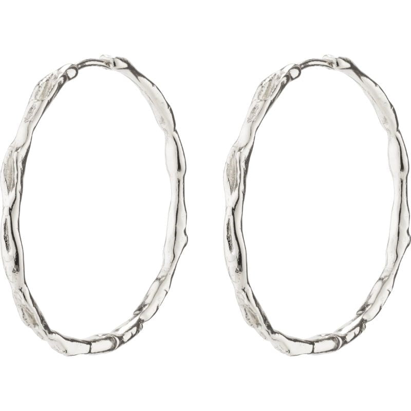 Dance the night away wearing these big silver-plated beauties from Pilgrim. Elegant hoop earrings with a wavy surface that have an exclusive, handcrafted vibe. A safe bet for all your outfits and adventures. So dance, smile and go on an adventure! Recycled item that is made from a min. of 75% recycled material.