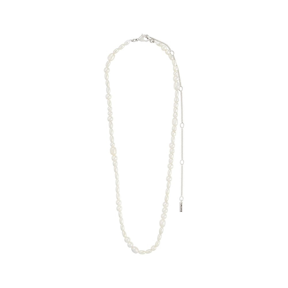 Pearls with a twist! Silver-plated necklace with a gorgeous blend of genuine freshwater pearls and mother-of-pearl coloured glass beads—a classic updated with a contemporary touch. The chain measures 40 cm, accompanied by a 15 cm extension for easy adjustment to complement your look. Style it alone for a timeless and elegant look, or layer with chunky gold chains for a trendy contrast. Perfect for both everyday outfits and special occasions where you aim to add a dash of effortless glam.