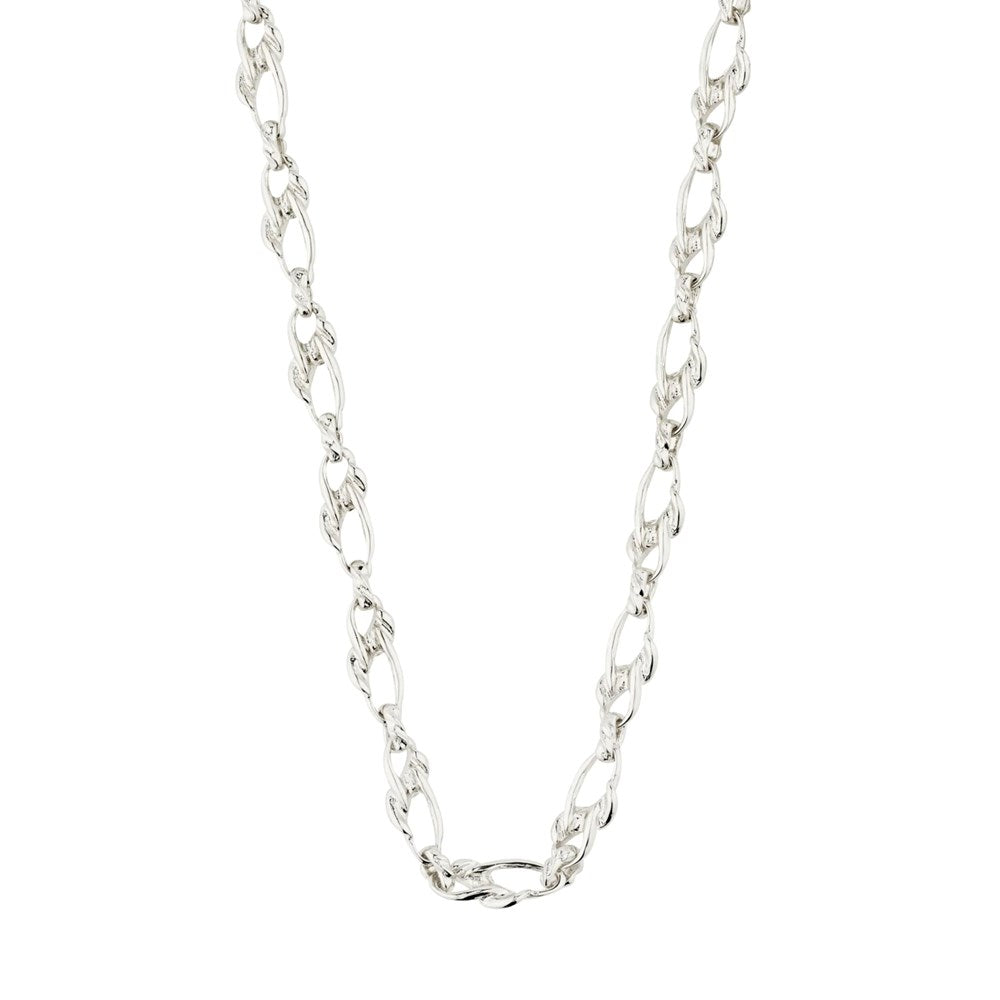 Dare to shine. This silver-plated necklace from Pilgrim's RANI series is a recycled item made from min. 75 % recycled material. The chain combines a classic style with retro vibes created by organically shaped links that add an eye-catching shine to your look. The necklace measures 50 cm and can be adjusted in length.