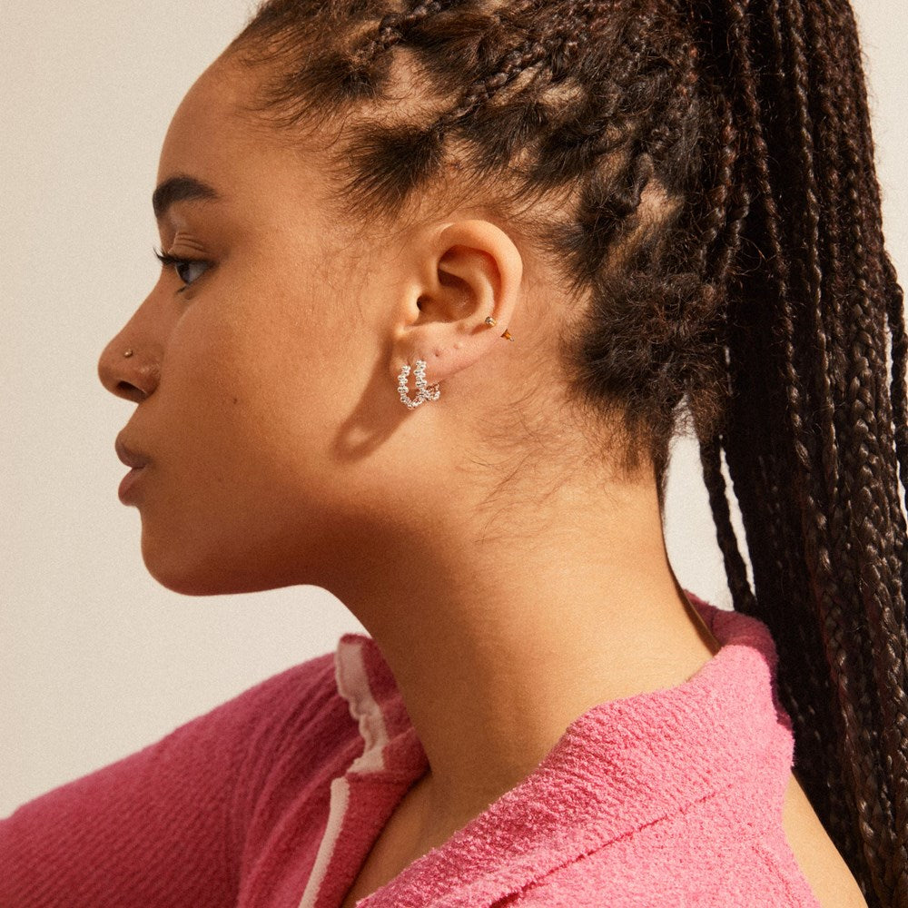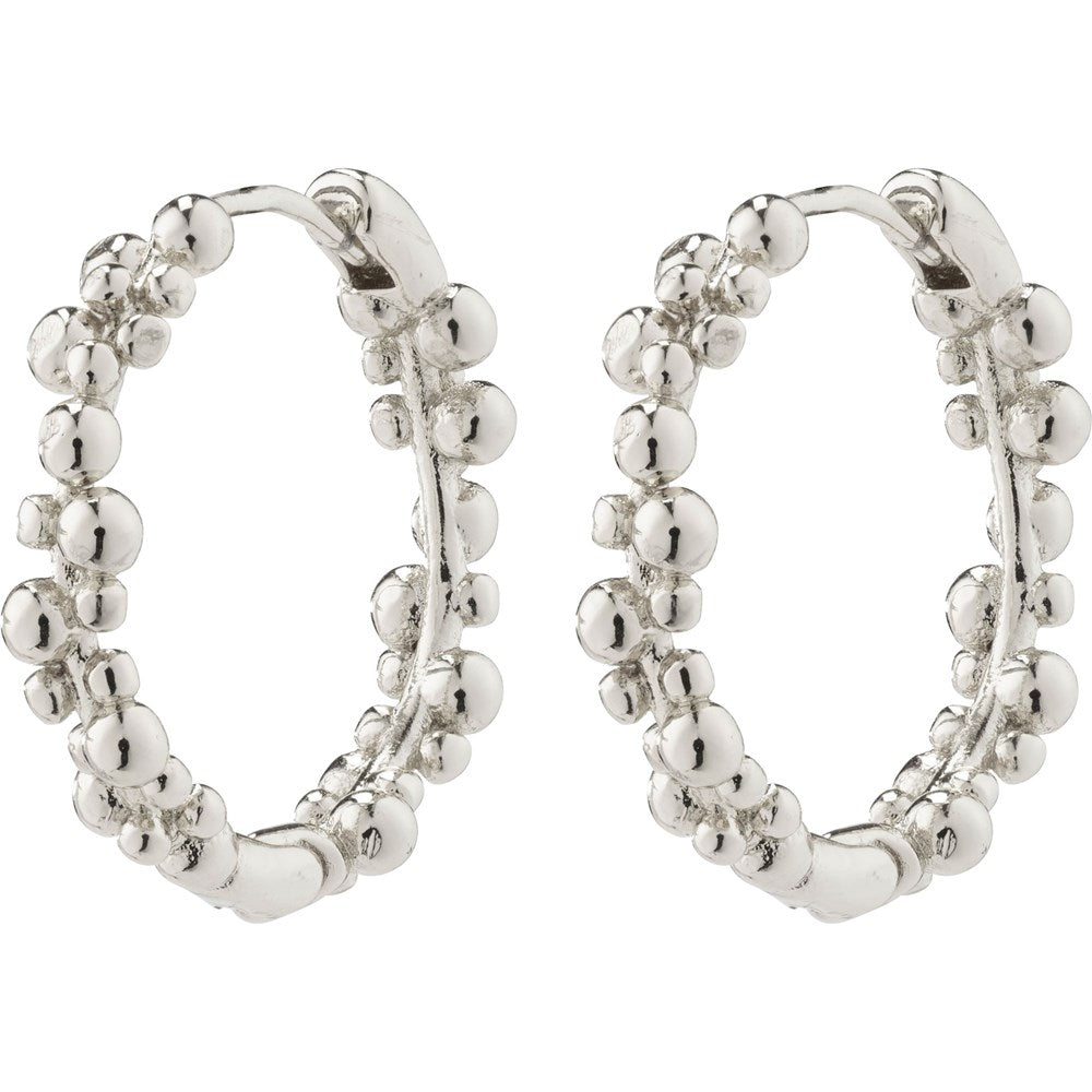 Let your light shine with these silver-plated hoops from Pilgrims Solidarity collection, made from a minimum of 75% recycled materials. The bubble design of the earrings exudes a high-fashion feel with a classic touch. Style these creoles with a turtleneck in dark shades to emphasise the exclusive vibes.